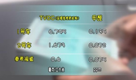 在打開車門通風(fēng)一分鐘后,技術(shù)人員再次檢測這兩輛車的TVOC和甲醛含量發(fā)現(xiàn)兩組數(shù)據(jù)都發(fā)生了大幅下降,回到了和早上檢測時相近的范圍。